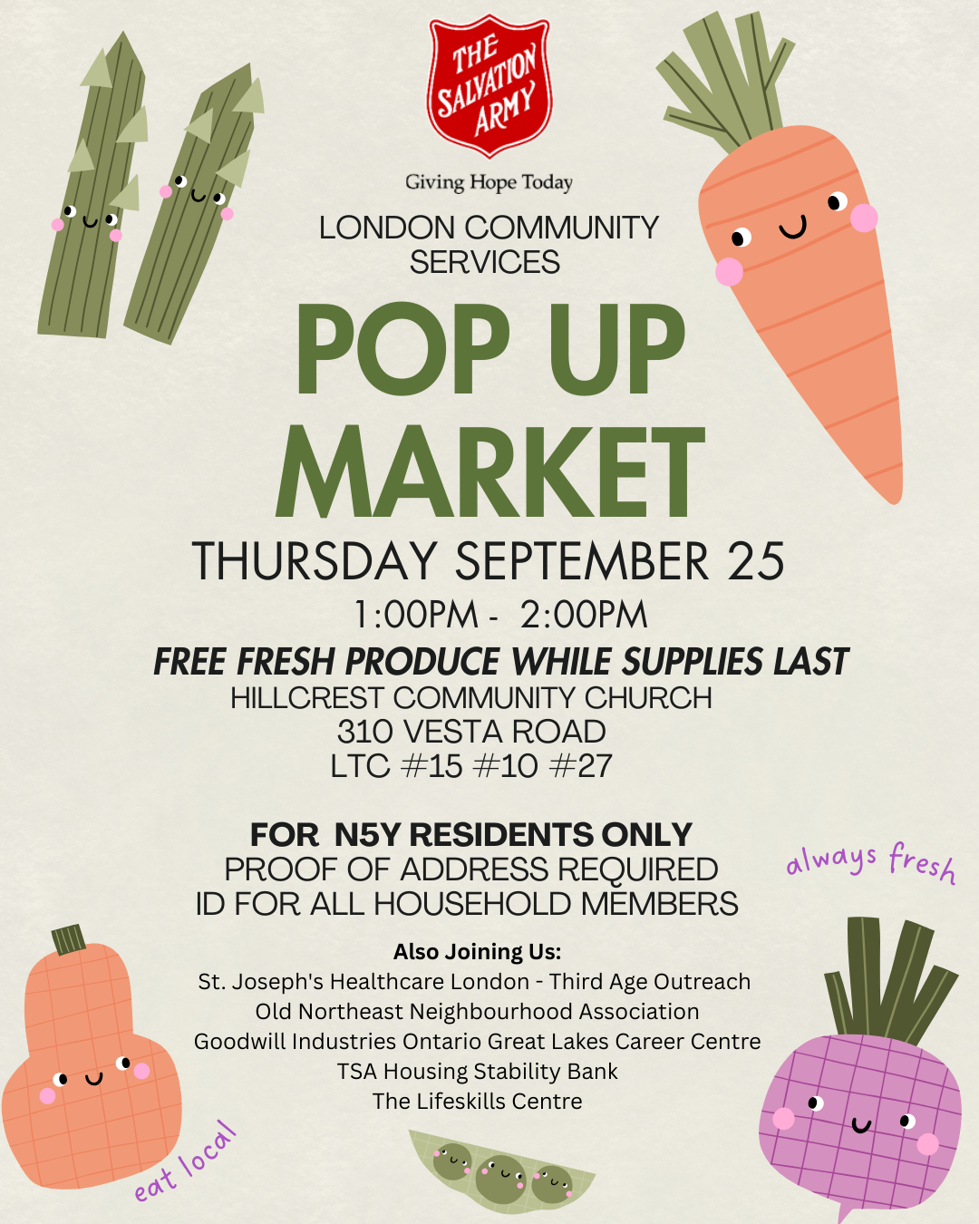 Location: London Community Services, 310 Vesta Road (Huron/Highbury)